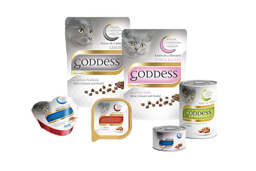 GODDESS erfüllt unseren Schmusern jeden Wunsch: mit edlen Gerichten - ganz wie es Katzen-Göttinnen und -Göttern gebührt.